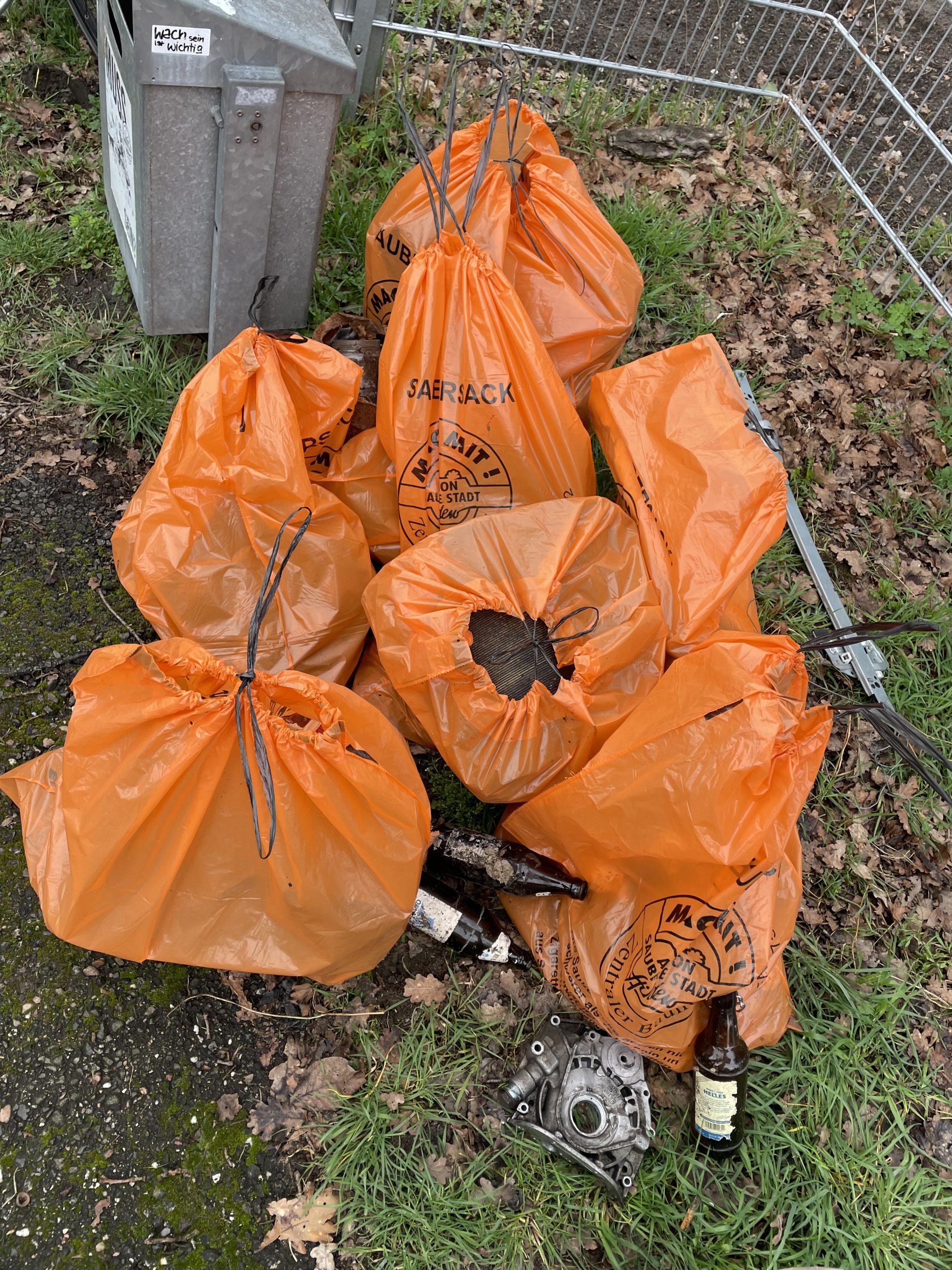 Wir waren dabei – mit 12 Personen! Gesammelt haben wir am Ringelrutschen-Spielplatz, an den Matschbergen, am Bolzplatz. Sieben Tüten waren das Ergebnis von etwa einer Stunde. Danach ging die eine Hälfte die Hofstraße entlang Richtung Finanzamt, und die andere Hälfte nahm den Weg durch die Felder an der Itter entlang. Hier kamen auch nochmal 4 Mülltüten voll zusammen, die wir am Kiosk im Stadtpark abgaben. Viele Sammlerinnen und Sammler jeden Alters trafen wir im Park, alle mit guter Laune und Hunger auf einen leckeren Eintopf. Den gabs im Fußraum des Fabry-Museums. Mit einem Dankeschön unseres Bürgermeisters ließen wir es uns schmecken. Eine gute Aktion!